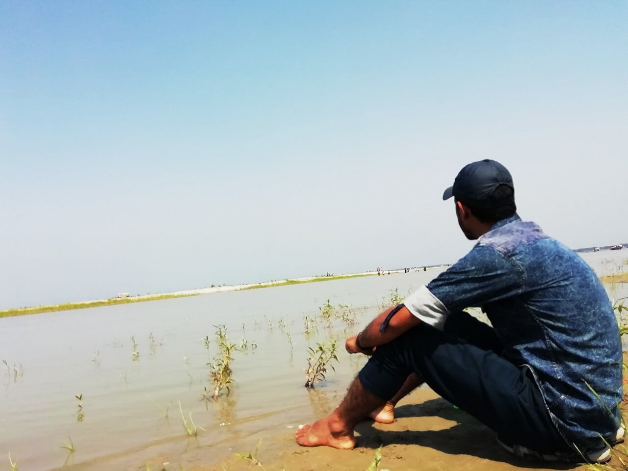 আমরা বেশ কিছুক্ষন হাটা হাটি করার পর পদ্মার এক পাড়ে এসে বসলাম। যদিও দুপুরের রোদে শরীর পুড়ে যাচ্ছিল, কিন্তু পদ্মার পাড়ে বসে সব ভুলে গেলাম। পা ভিজালাম পদ্মার নদীর পানিতে।